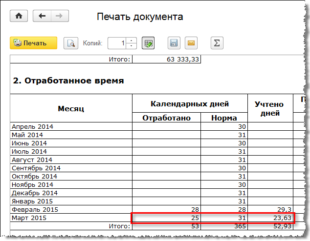 Ранее в программе в этом примере за "количество календарных дней, приходящихся на время, отработанное в данном месяце" принимались 24 дня.