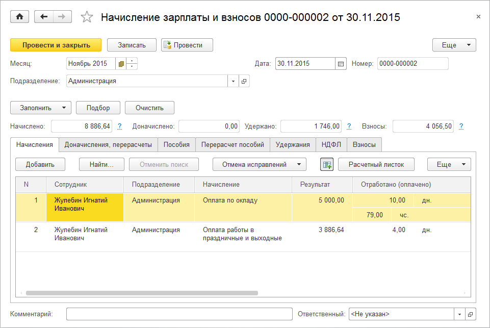 Таким образом, помимо оплаты командировки, в ноябре ему был начислен оклад за 10 дней и оплата работы в выходные за 4 дня.