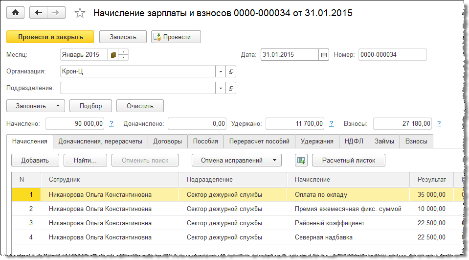 Например, в январе сотруднику было начислено: