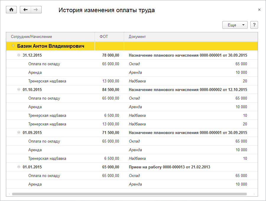 Кроме того, в версии 3.0.24 усовершенствовано хранение сведений о плановом ФОТ. Это, в частности, позволило реализовать рассмотренные выше возможности работы с плановыми начислениями.
