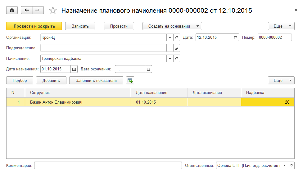 Документ «Назначение планового начисления» предполагается использовать для назначения именно таких начислений. Если назначать несколько одновременно действующих не требуется, то рекомендуется пользоваться другими документами (например, «Изменение плановых начислений» с отбором по назначаемому начислению).