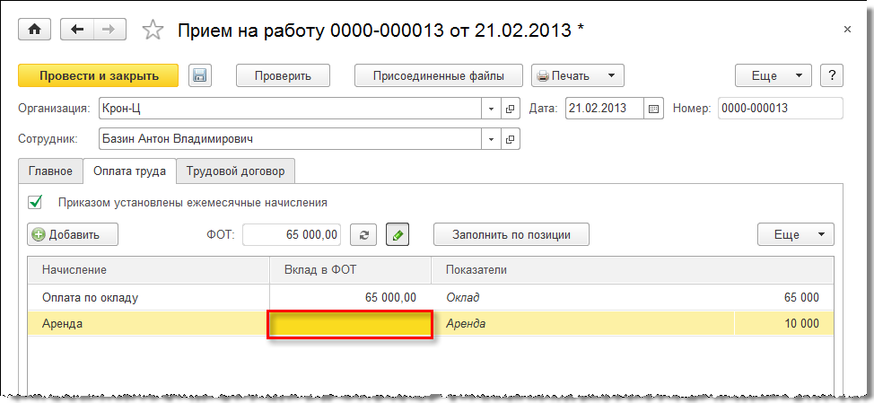 Если флажок установлен, то, как и ранее, при назначении начисления будет рассчитан его вклад в ФОТ. Однако если флажок снят, то начисление не будет влиять на плановый ФОТ сотрудника.