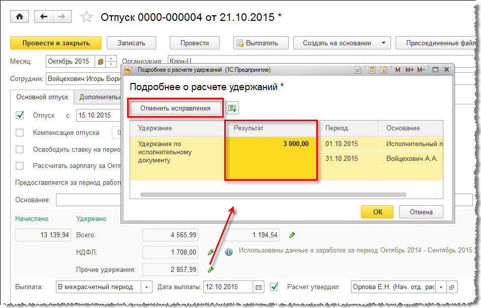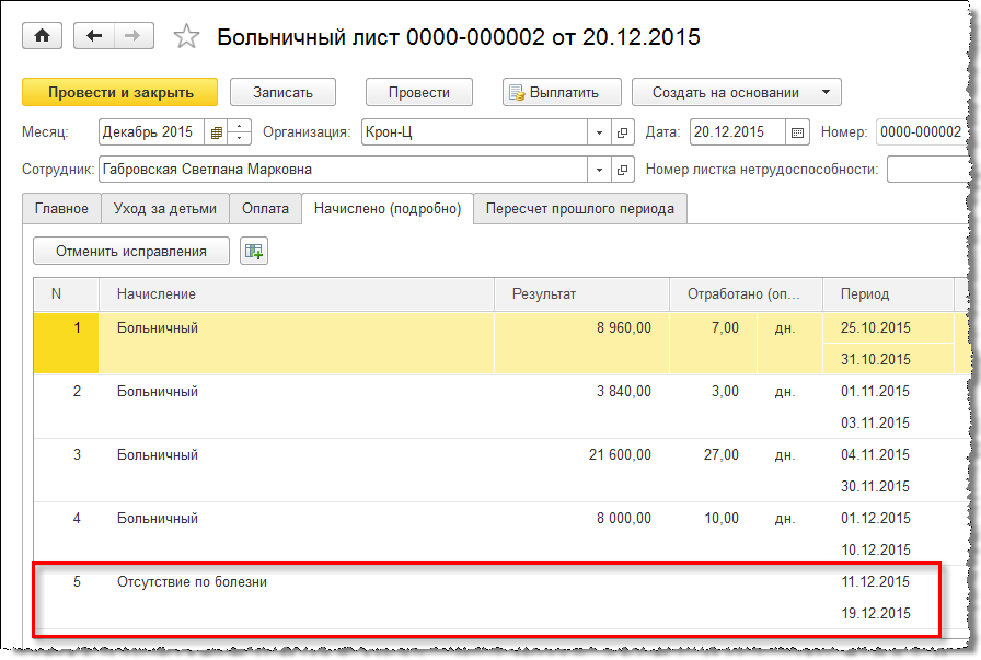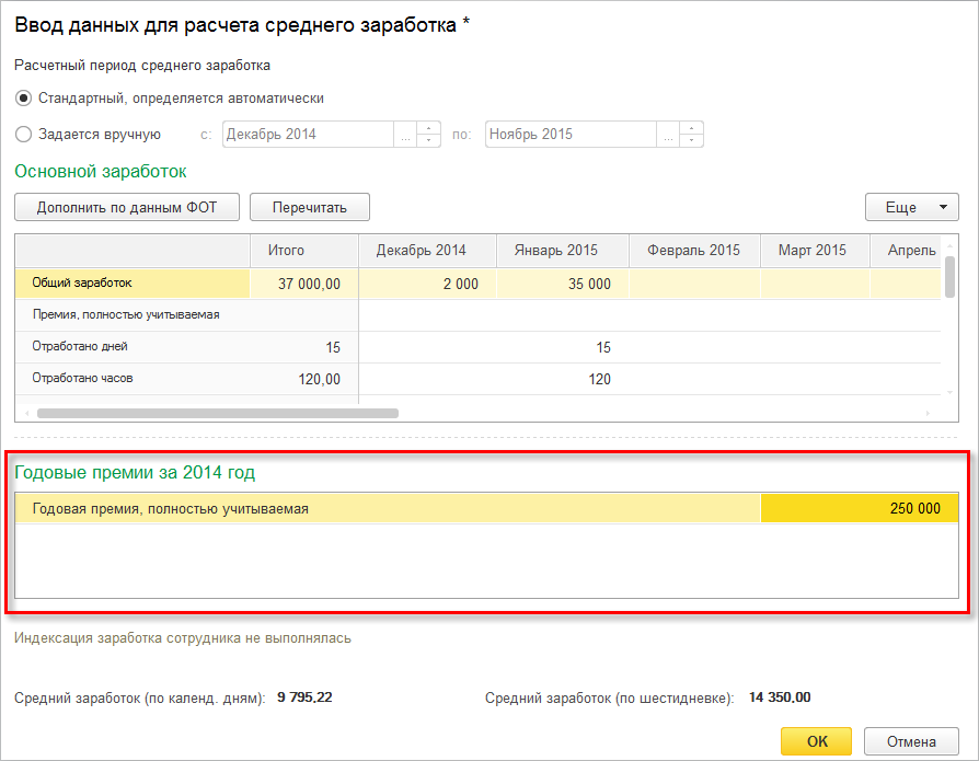 Указанная настройка влияет и на заполнение показателя в других ситуациях. Например, из периода действия начисления могут исключаться некоторые «кусочки» за счет регистрации отпуска или больничного. И тогда если сдельная выработка будет зарегистрирована на период, который попадает в период отсутствия сотрудника, то при расчете она учтена не будет (при варианте «по соответствию даты регистрации интервалу начисления»).