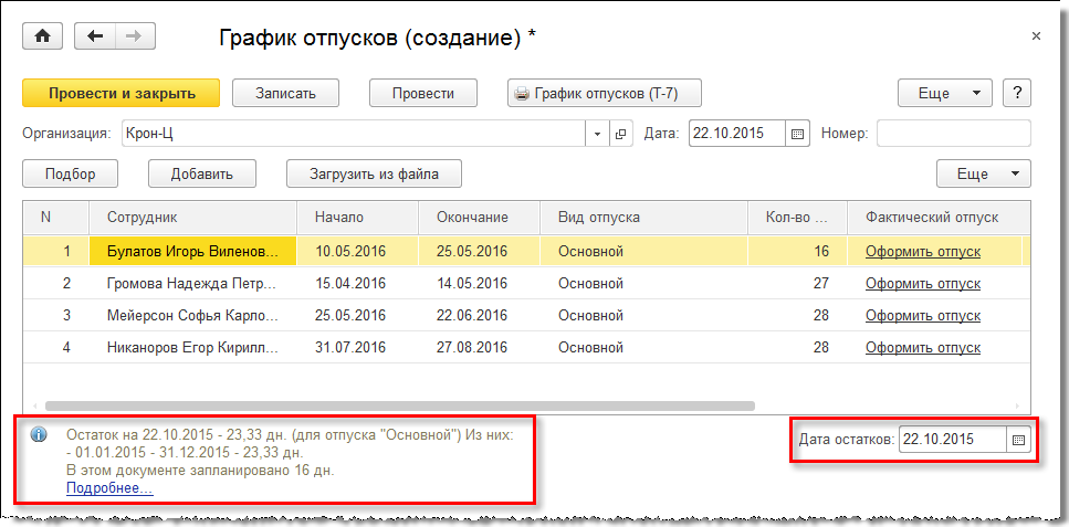 Обращаем внимание, что, как и прежде, окончательное право на отпуск определяется согласно данным, указанным именно в кадровых документах. Возможность указать число дней в позиции реализована лишь для более удобного оформления приказов.