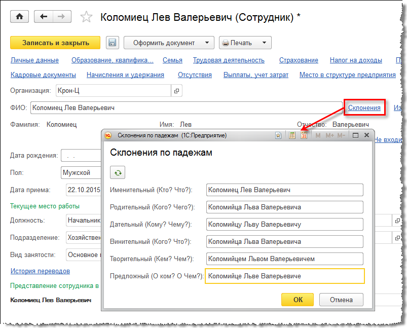 Программа сама будет добавлять подходящее дополнение в зависимости от текущего состояния сотрудника. При этом остается возможность указать любое другое дополнение вручную, и оно также будет учитываться при формировании наименования.