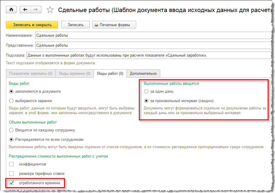 Рассчитанные в документе суммы регистрируются сводно на начало периода документа и используются при дальнейшем заполнении показателя «Сдельный заработок». По умолчанию при расчете начисления с этим показателем его значения «собираются» за фактический период такого начисления.