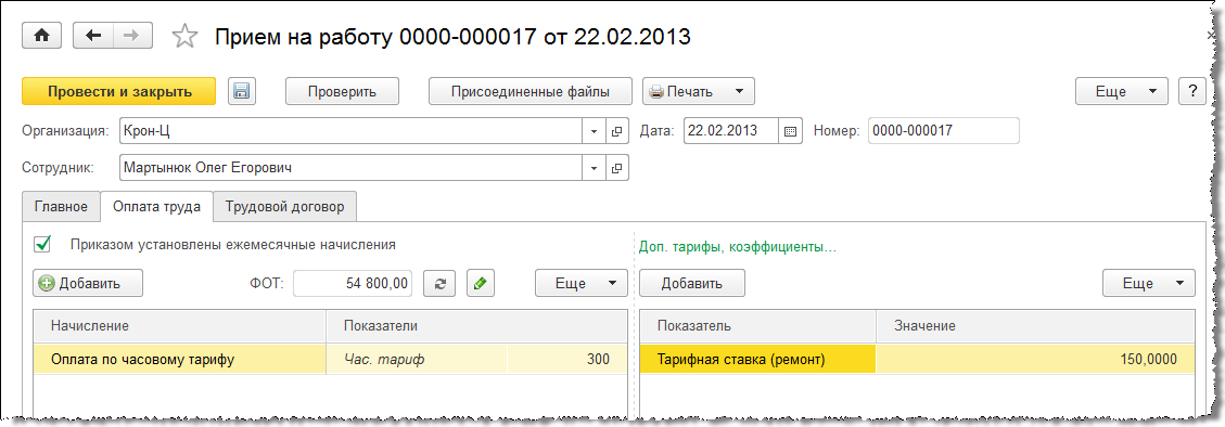 Теперь этому сотруднику одновременно будет начисляться два одинаковых начисления, но по разным основаниям.