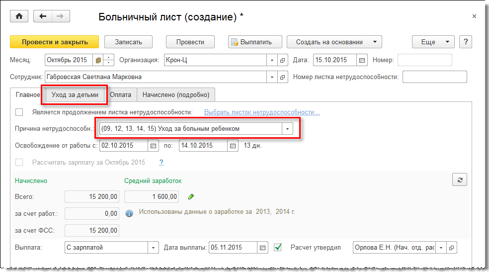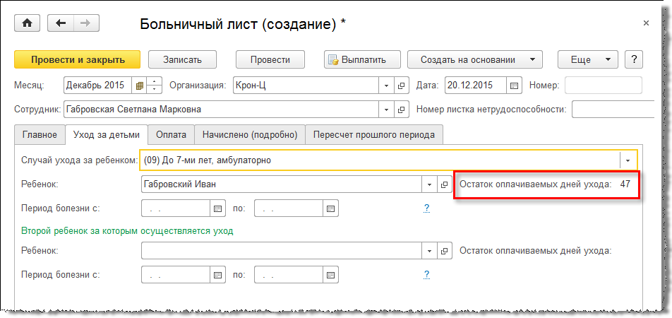 Перерасчет пособий выполняется автоматически в случае внесения исправлений в существующие приказы на отпуск по уходу. Также необходимость перерасчета можно зарегистрировать вручную в разделе «Зарплата – Перерасчеты».