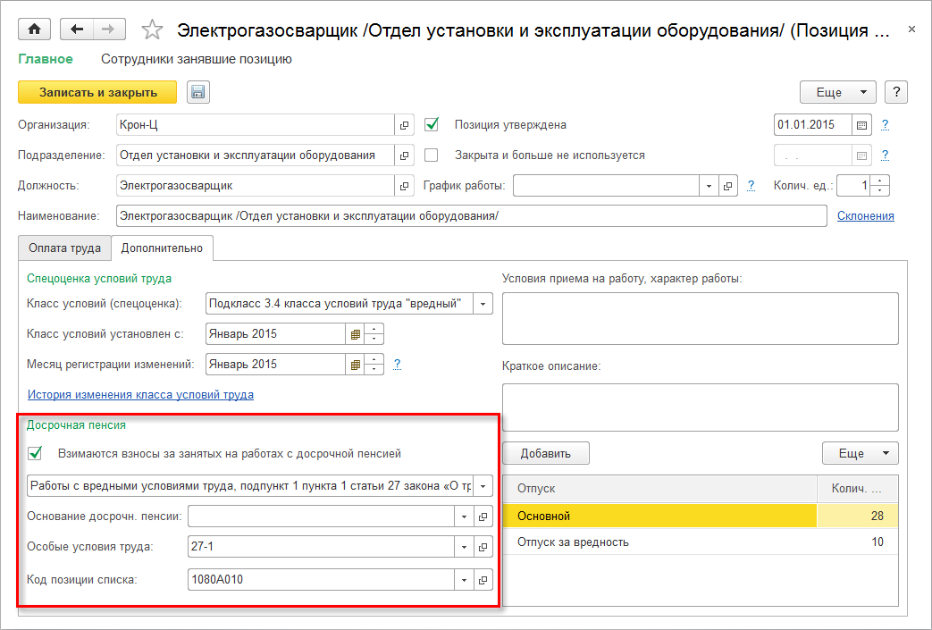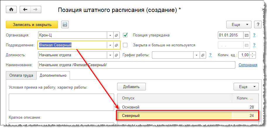 Тогда при создании позиции в этом подразделении для нее автоматически будет назначено право на 24 дня северного отпуска.