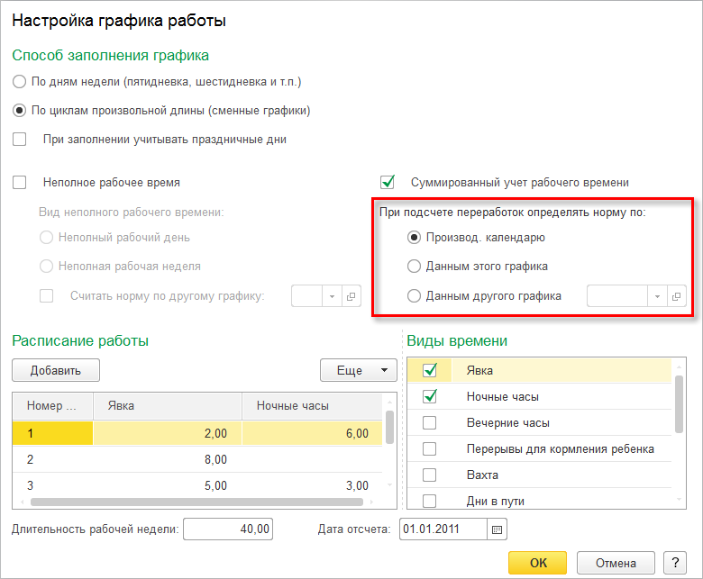Однако возможности использовать не сразу все, а только несколько выбранных видов времени не было. Для многих пользователей с простыми системами оплаты труда это ограничение никак не проявлялось. Все поставляемые с программой начисления были правильно настроены и обеспечивали корректный расчет.