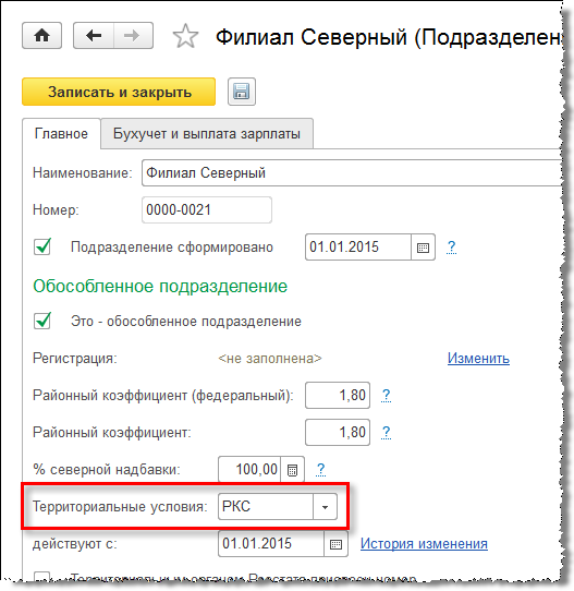 Например, у организации есть филиал, расположенный в Районе Крайнего Севера.