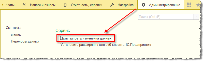 Управление доступно только в том случае, если дата запрета изменения используется. Необходимость использования по-прежнему управляется только администратором в разделе «Администрирование – Поддержка и обслуживание» (должен быть установлен соответствующий флажок).