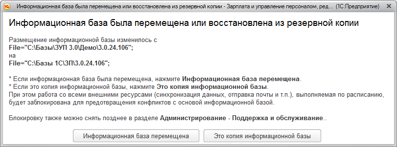 Для предотвращения таких ситуаций при изменении местоположения информационной базы теперь блокируются все подобные регламентные задания.