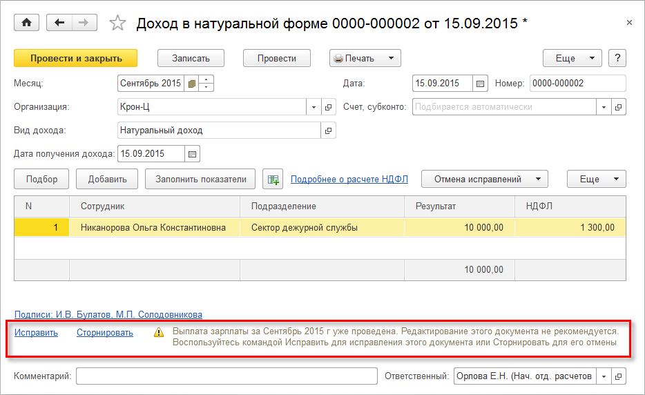 Для документов «Доход в натуральной форме» и «Приз, подарок» добавлена возможность ввода документа-исправления.