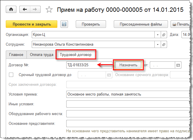 Добавлена возможность при оформлении приема на работу автоматически назначить номер трудового договора очередным, следующим по порядку.