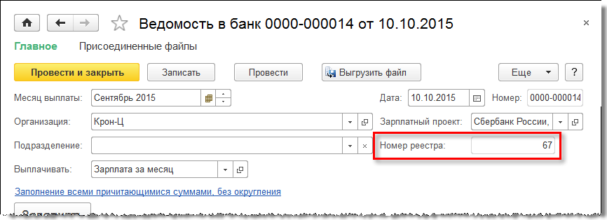 В документах, участвующих в обмене с банками в рамках зарплатного проекта, реализована возможность уточнить номер реестра.