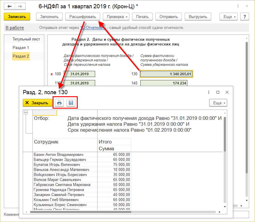 Добавлена возможность печати и сохранения в файл расшифровок регламентированных отчетов.