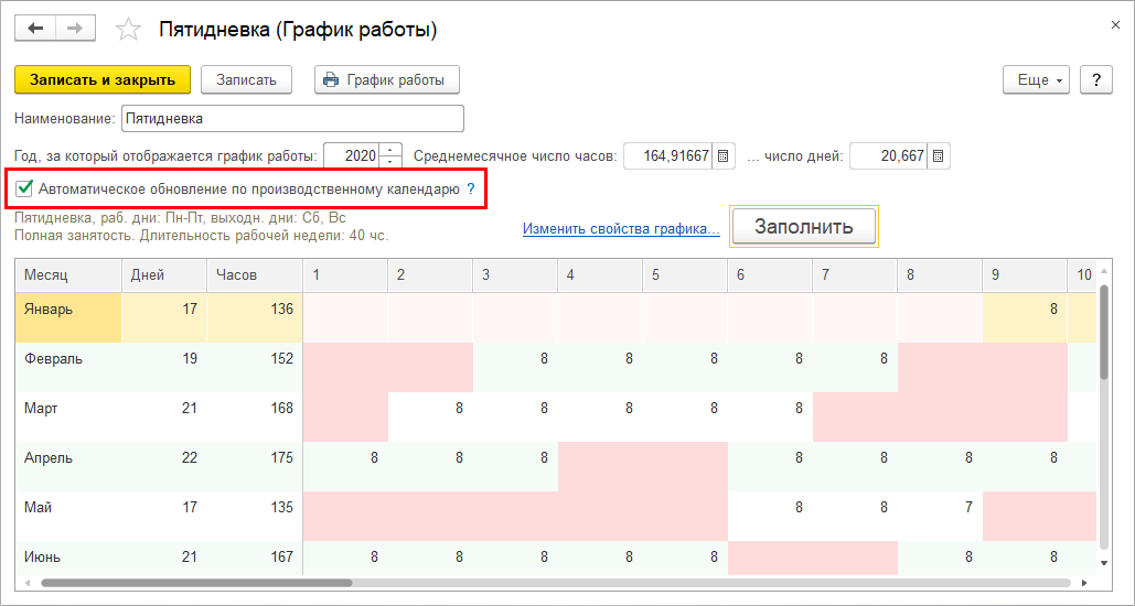Этот признак по умолчанию установлен для автоматически заполненных графиков. Если в график внесены ручные изменения, то признак снимается. Если же его установить, то при обновлении производственного календаря график будет полностью перезаполнен, и ручные изменения будут утеряны.
