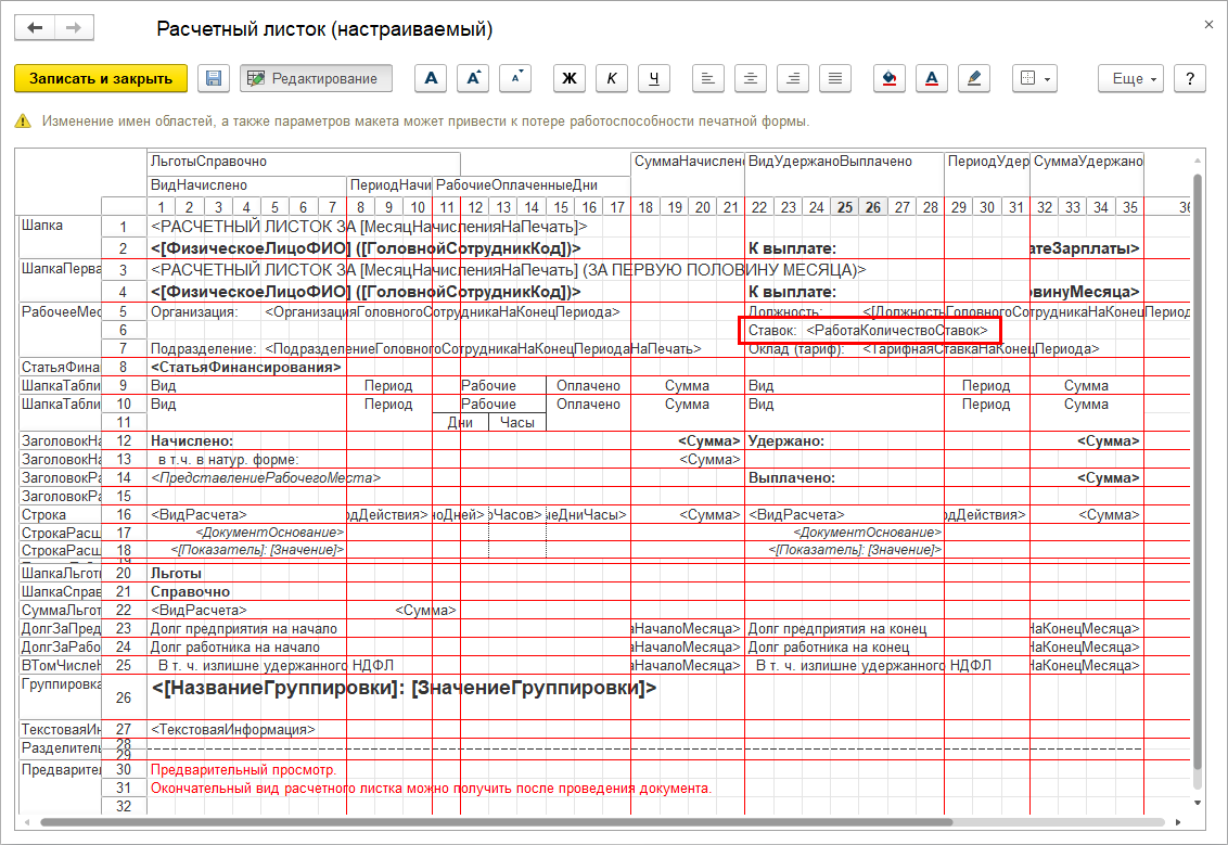 Добавлена возможность настроить вывод в расчетный листок занимаемое сотрудником количество ставок. Для этого необходимо: