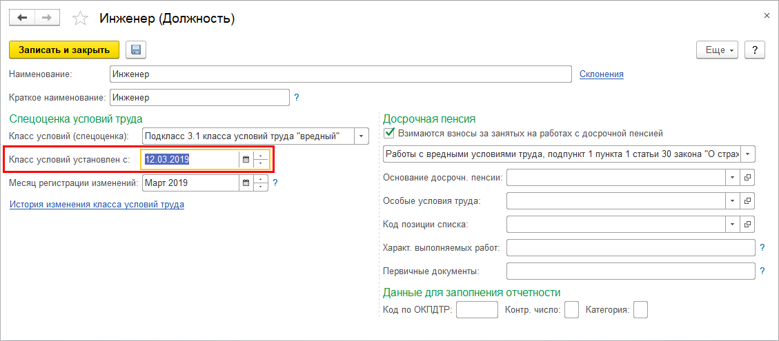 В версии 3.1.10 такая необходимость устранена. Теперь класс условий труда можно задать с конкретного дня, и начисления будут разбиты по периодам – до этого дня и после него, и соответствующие их части будут корректно обложены взносами.