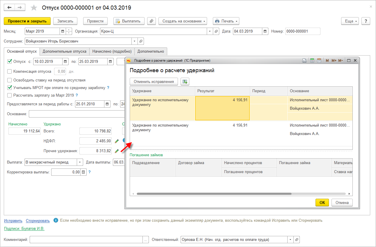 В версии 3.1.10 реализовано ограничение удержаний непосредственно при расчете межрасчетных документов, а также в начислении за первую половину месяца и в увольнении. Недодержанная сумма будет учтена в документе начисления зарплаты, после чего – при заполнении документа ограничения взысканий.