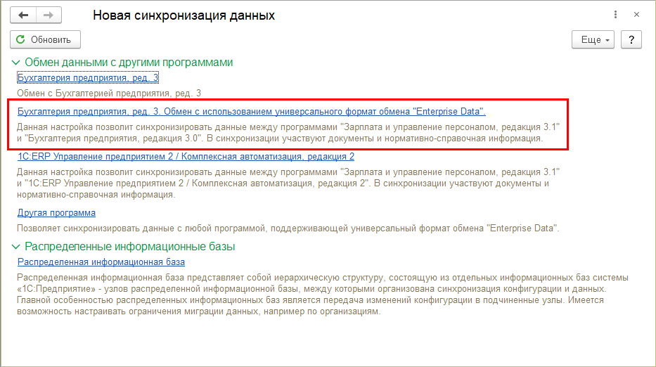 Добавлен альтернативный вариант синхронизации с Бухгалтерией предприятия, ред. 3. Его можно использовать, например, при настройке обмена двумя приложениями в режиме сервиса, если используются разные сервисы. По объему передаваемой информации новый вариант соответствует старому. Подробнее о формате см. здесь и здесь.
