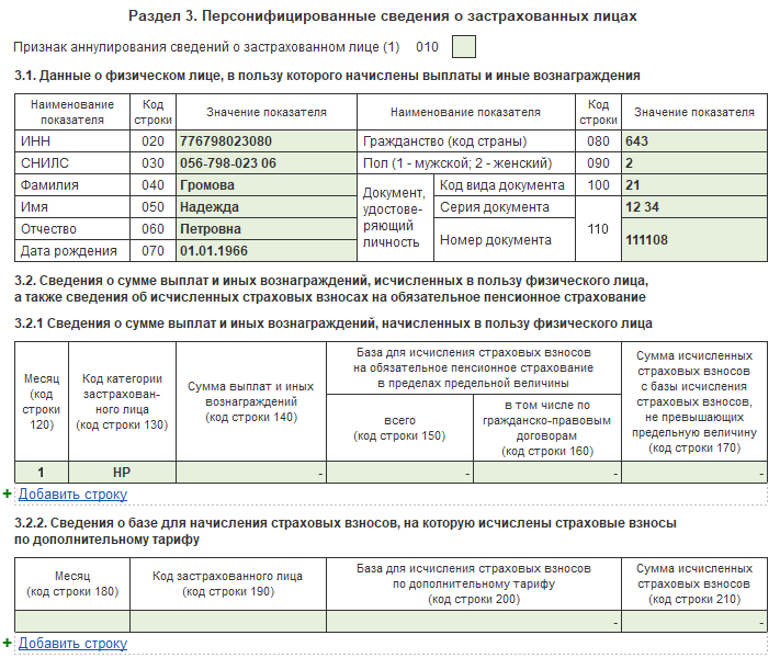 пользователей, в связи с требованиями ИФНС, в отчете РСВ для сотрудников без