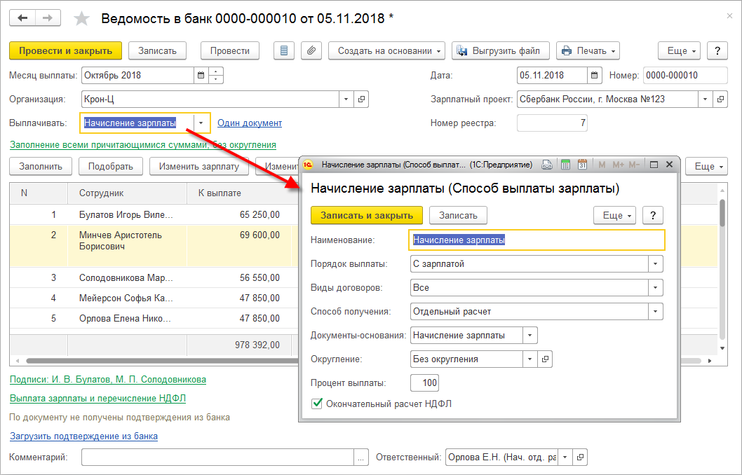 В таких ведомостях используется новый способ выплаты "Начисление зарплаты".