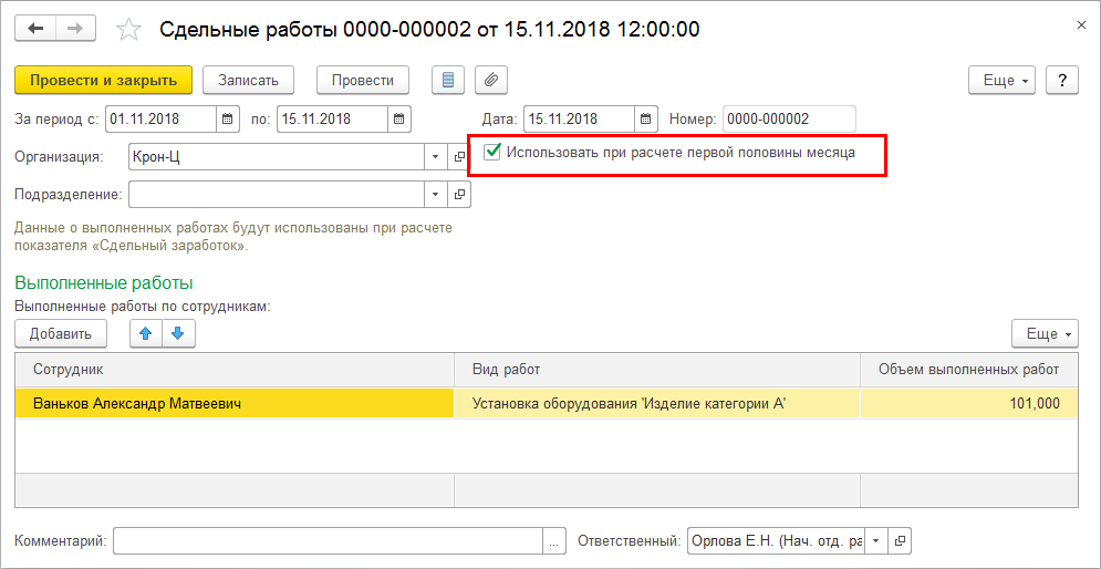 А в сдельном наряде ("Данные для расчета зарплаты") теперь можно указать, что его данные следует использовать при расчете первой половины месяца.