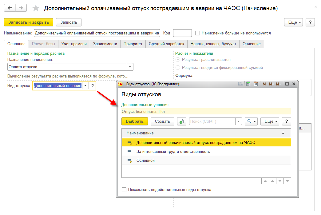 В программе уже имеется возможность отражения дополнительного отпуска пострадавшим в аварии на ЧАЭС. Такой отпуск, как правило, не оплачивается работодателем – он оплачивается из федерального бюджета при обращении сотрудника в уполномоченный орган.