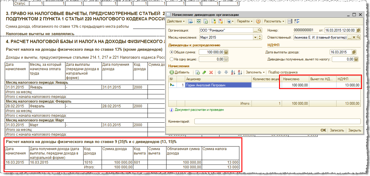 Зачтенная сумма отражается в регистре налогового учета по НДФЛ.
