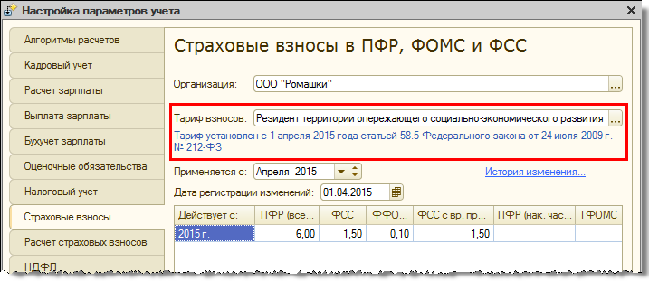 В соответствии с Федеральным законом от 31 декабря 2014 г. № 519-ФЗ реализован очередной льготный тариф страховых взносов «Резидент территории опережающего социально-экономического развития».