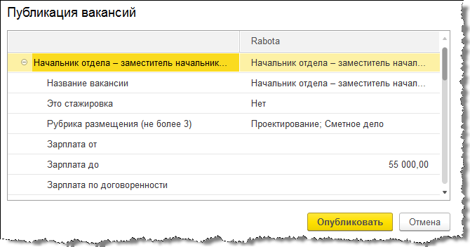 При публикации возможно заполнение тех же полей, что и при публикации непосредственно на сайте.