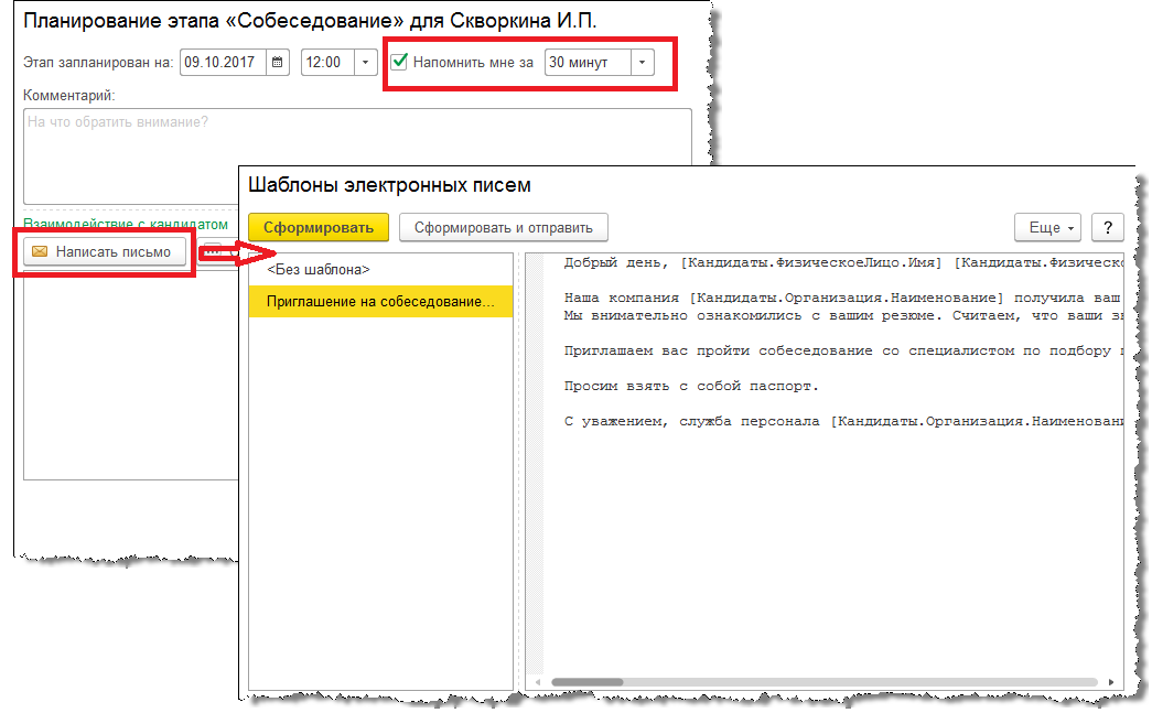При включении этих возможностей напоминания и шаблоны сообщений могут быть использованы для эффективного взаимодействия с кандидатами.