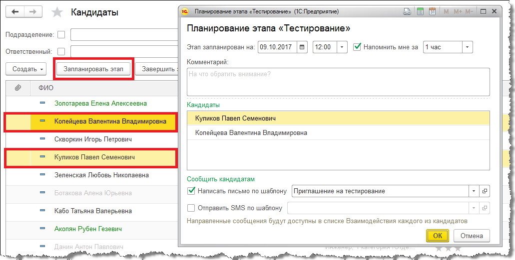 В версии 3.1.4 реализована возможность множественного планирования и завершения этапа работы с кандидатами, множественного утверждения и отклонения кандидатов.
