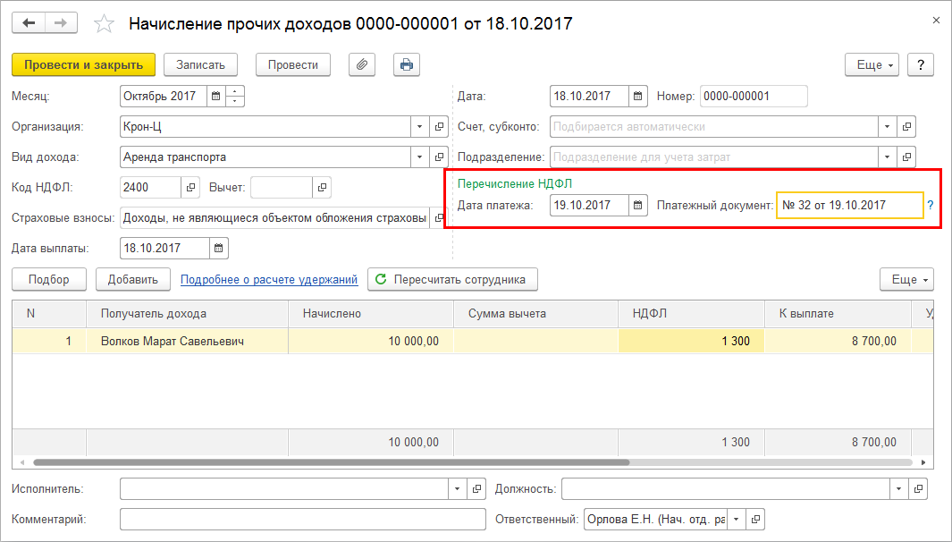 В документы регистрации незарплатных доходов ("Дивиденды", "Выплата бывшим сотрудникам" и "Начисление прочих доходов") добавлена возможность указать дату перечисления НДФЛ по ним и реквизиты платежного документа. Раньше перечисленный НДФЛ регистрировался датой выплаты, а возможности указать реквизиты не было.