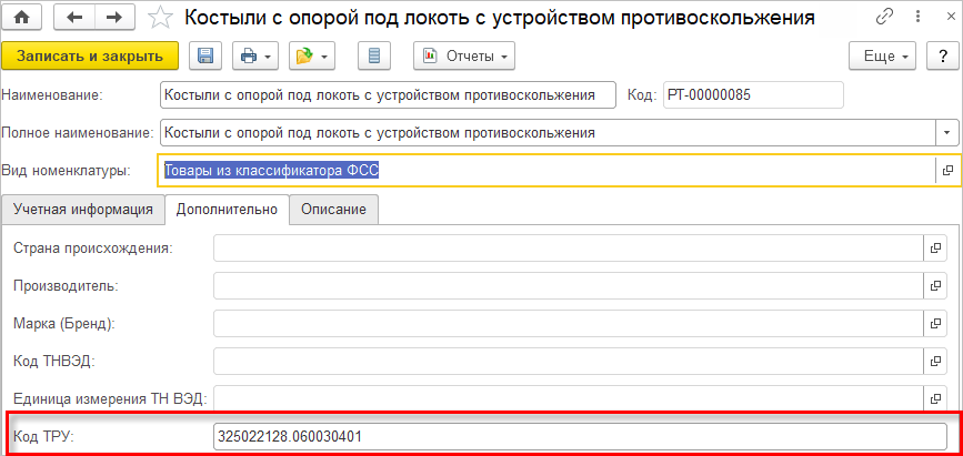 В карточке товара появляется новый параметр - Код ТРУ.