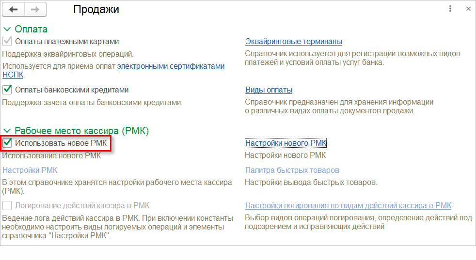 Подключить новое РМК максимально просто. Для этого достаточно в настройках продаж установить соответствующий флаг.