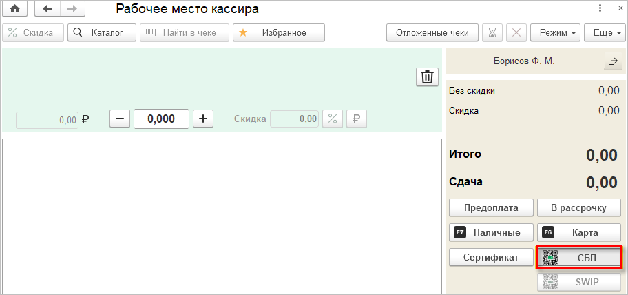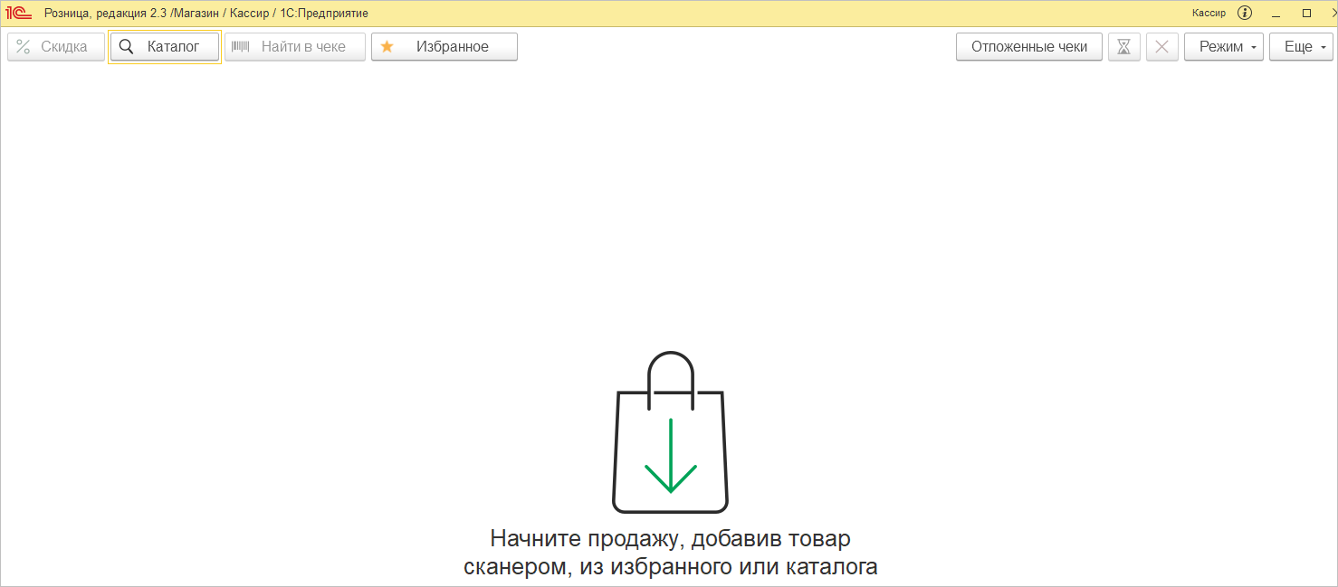После этого кассир попадает в основную рабочую область, интерфейс которой минималистичен и не перегружен лишними элементами.