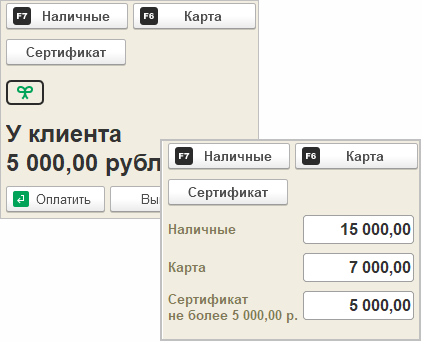Для реализации функционала оплаты несколькими подарочными сертификатами в новой версии программы были добавлены следующие элементы управления: