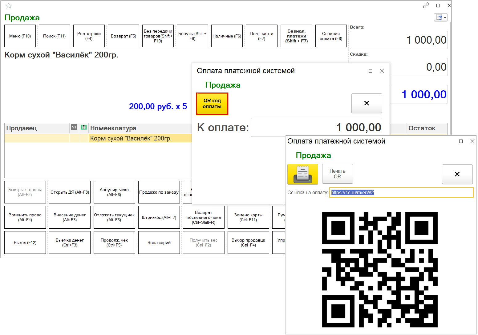 Если покупатель не предоставил код клиента, то QR код заказа должен сформировать продавец, а считать – покупатель. Для удобства считывания QR код можно распечатать с помощью кнопки Пречек.