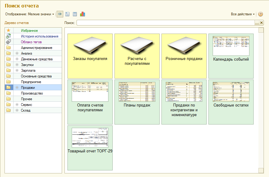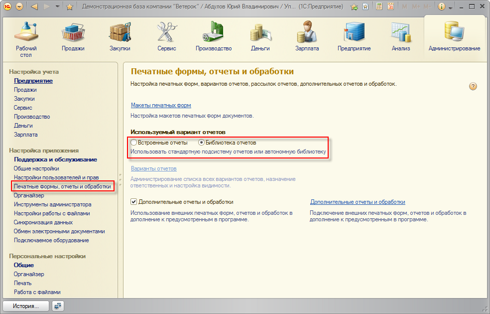 Добавлена новый вариант механизма отчетов под названием Библиотека отчетов. Она позволяет удобнее работать со списком отчетов, осуществлять гибкий поиск, работу с избранным. Также изменена форма отчета по-умолчанию, в которой добавлена более гибкая работа с настройками отчета.