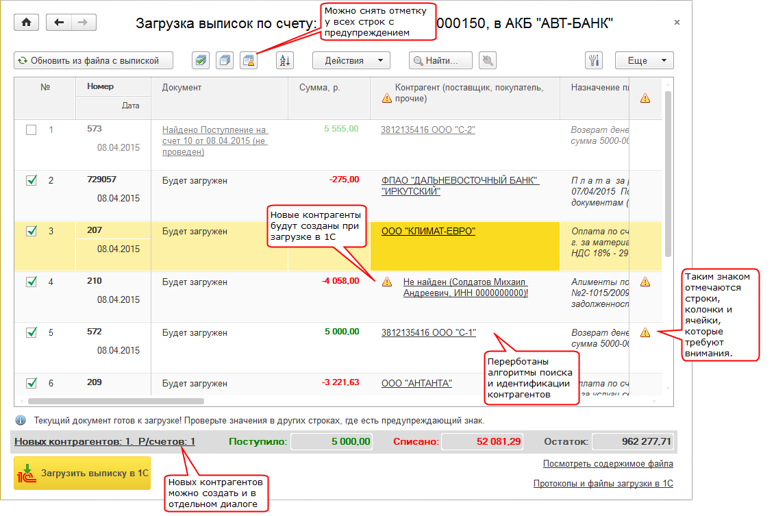 В обработке обмена с банком появились новые возможности и были переработаны существующие механизмы: