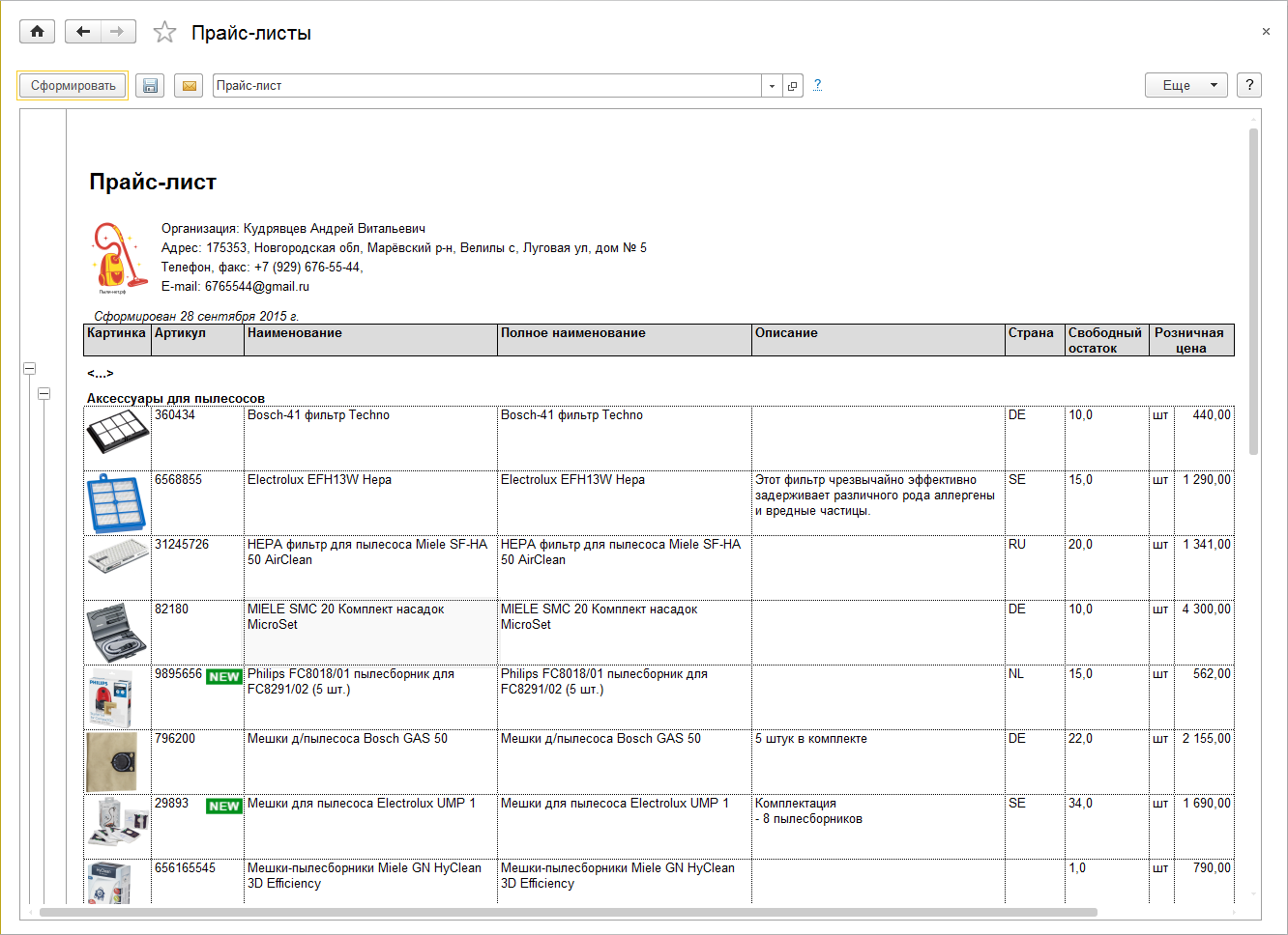 Теперь в прайс-листе можно выводить картинки и остатки на складах!