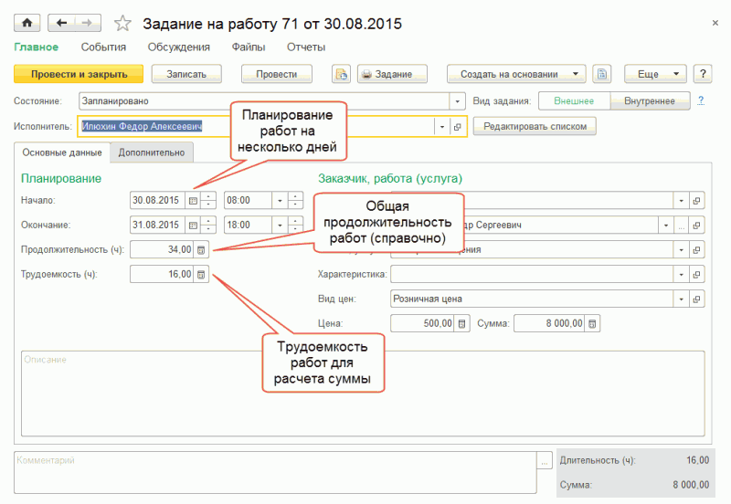 Переработана карточка задания на работу для повышения удобства работы с документом.