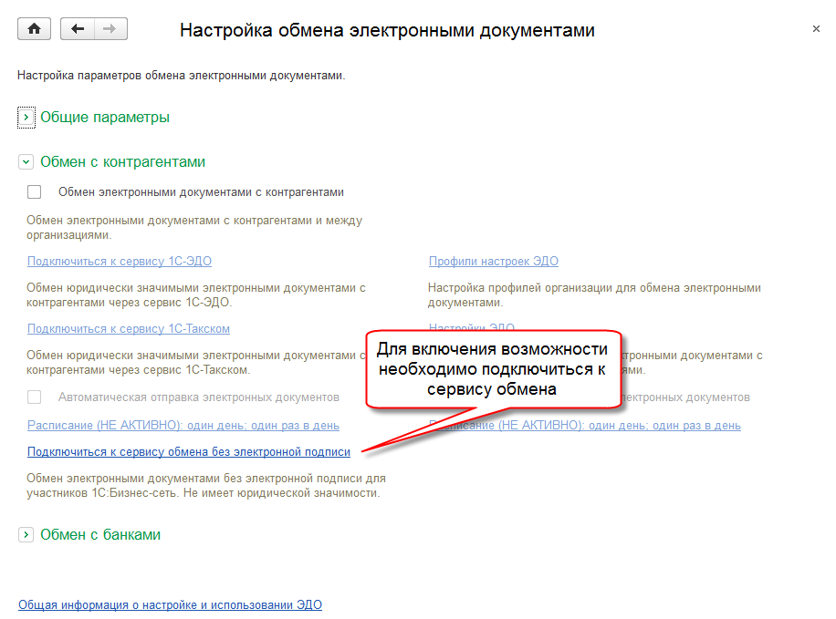 Подключиться к сервису можно в разделе «Настройки – Настройка обмена электронными документами».