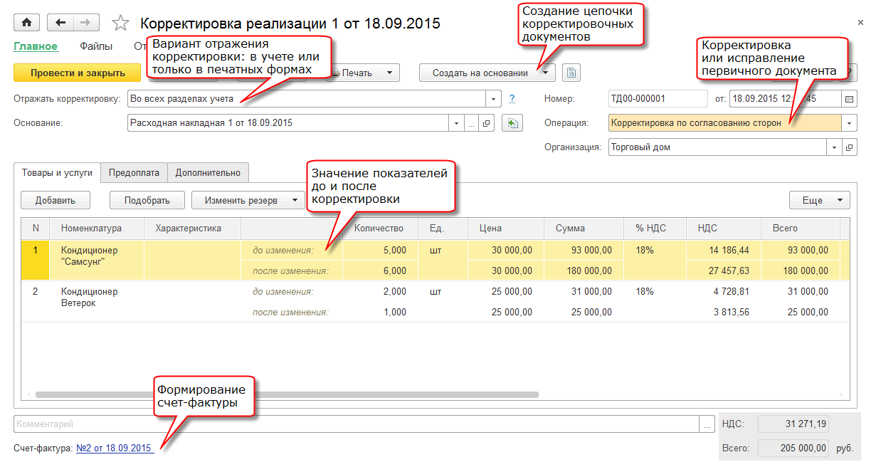 Добавлены документы «Корректировка поступления», «Корректировка реализации» и корректировочные счета-фактуры.