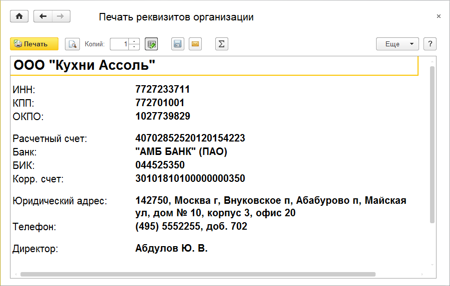 Если в карточке иностранной организации ИНН не указан, вместо него в печатных формах будет отображаться регистрационный номер рядом с наименованием контрагента.