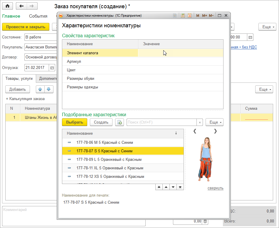 Изображения характеристик также будут видны при выборе характеристики товара в документах.