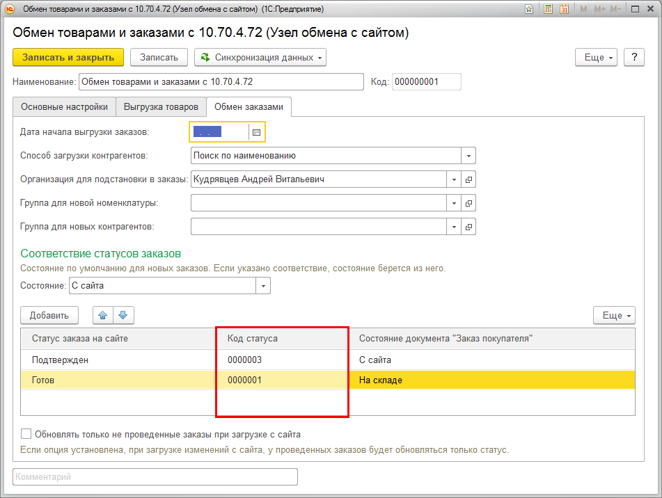 Реализована идентификация состояний заказа по коду статуса заказа на сайте. Не смотря на то, что с сайта статус выгружается в формате "[Код] Название статуса", ранее сопоставление происходило только по названию.